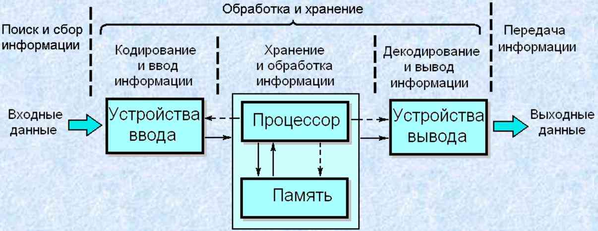 Этапы прохождения информации обычно соответствуют следующей схеме: